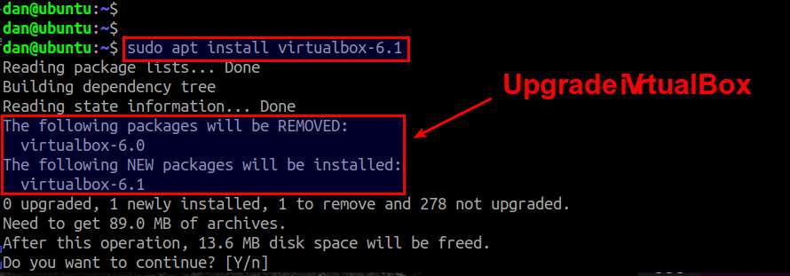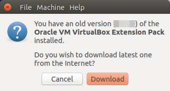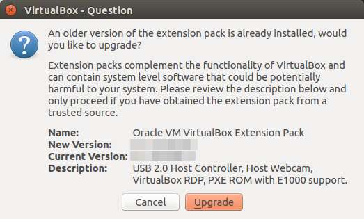 When prompted, go ahead and upgrade VirtualBox Extension Pack.