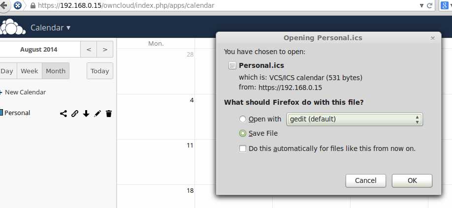 Note that ownCloud may be alerting about an Apache misconfiguration. Follow the steps below to solve this issue, and get rid of that error message.